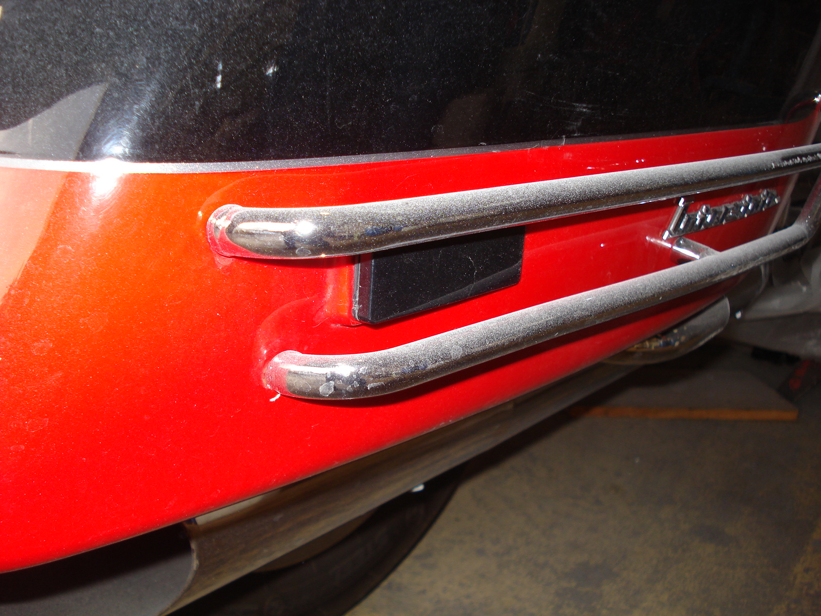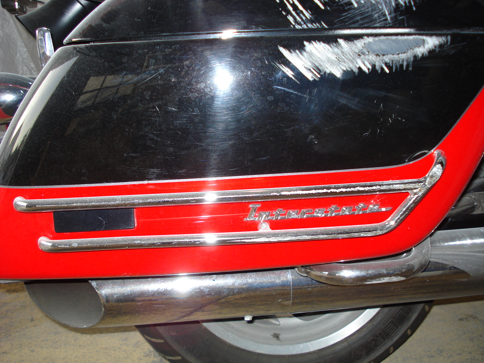 A voir les éraflures sur le haut de la valise , je vais laisser les protections basses chromées standards et mettre une protection caoutchouc le long de la valise côté couvercle placé dans le sens de la glissade possible !!!