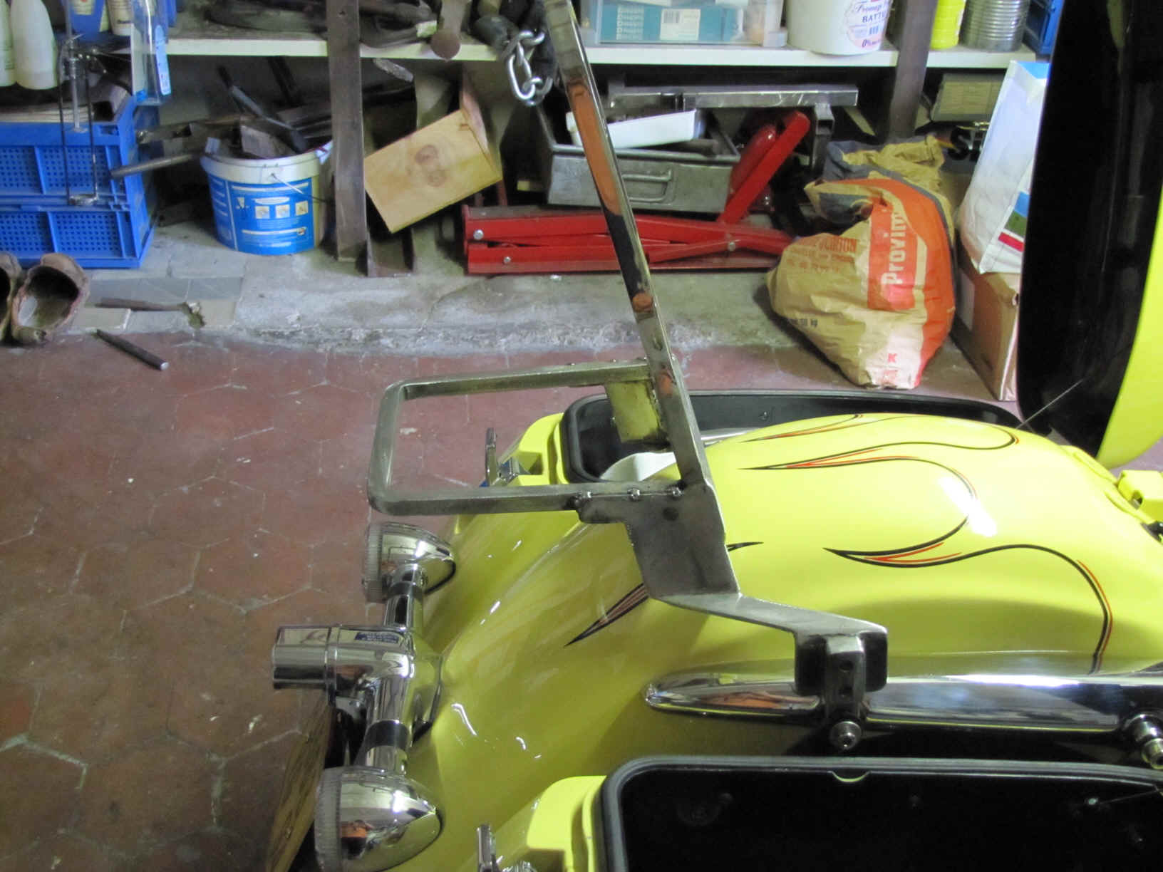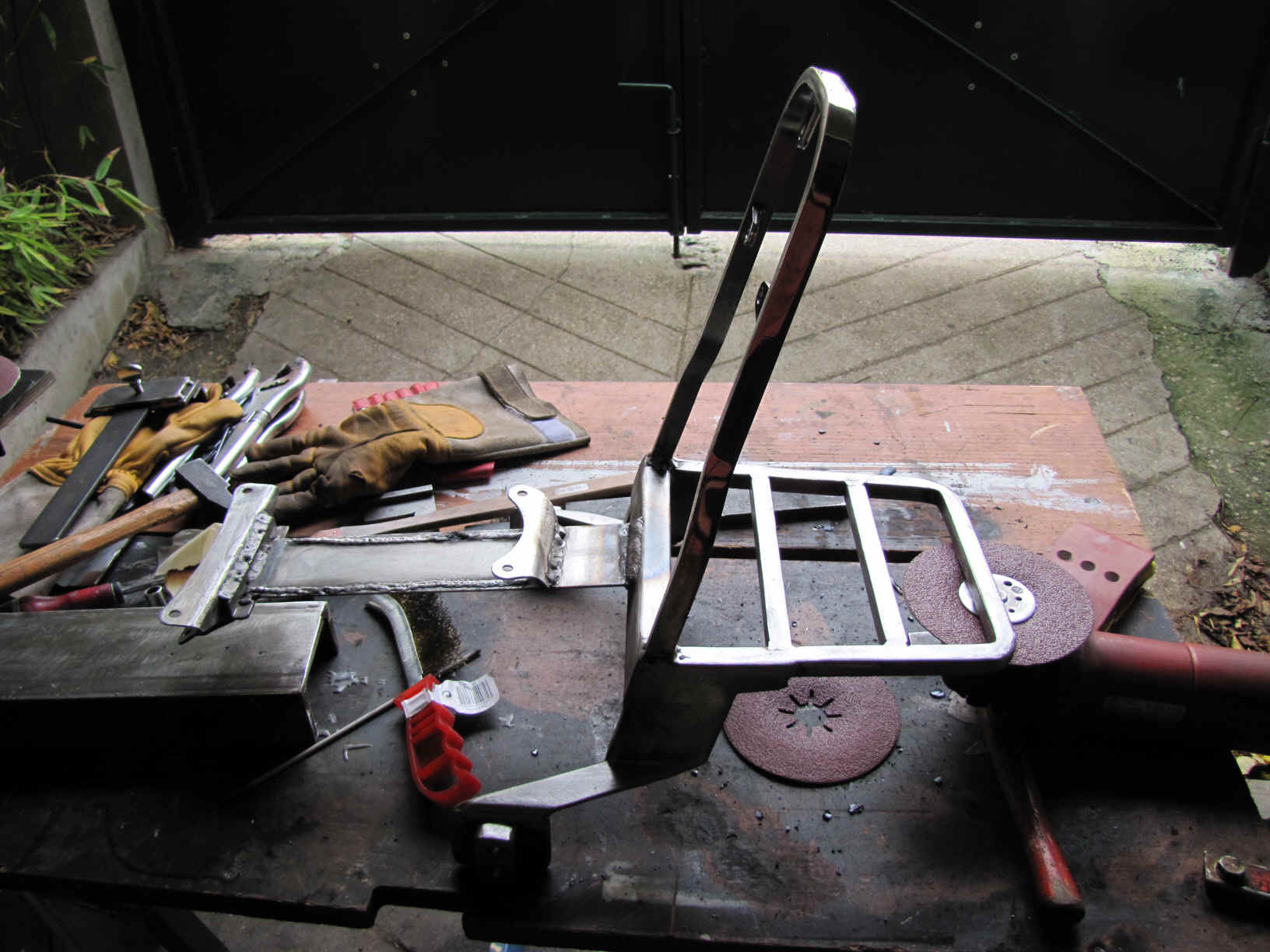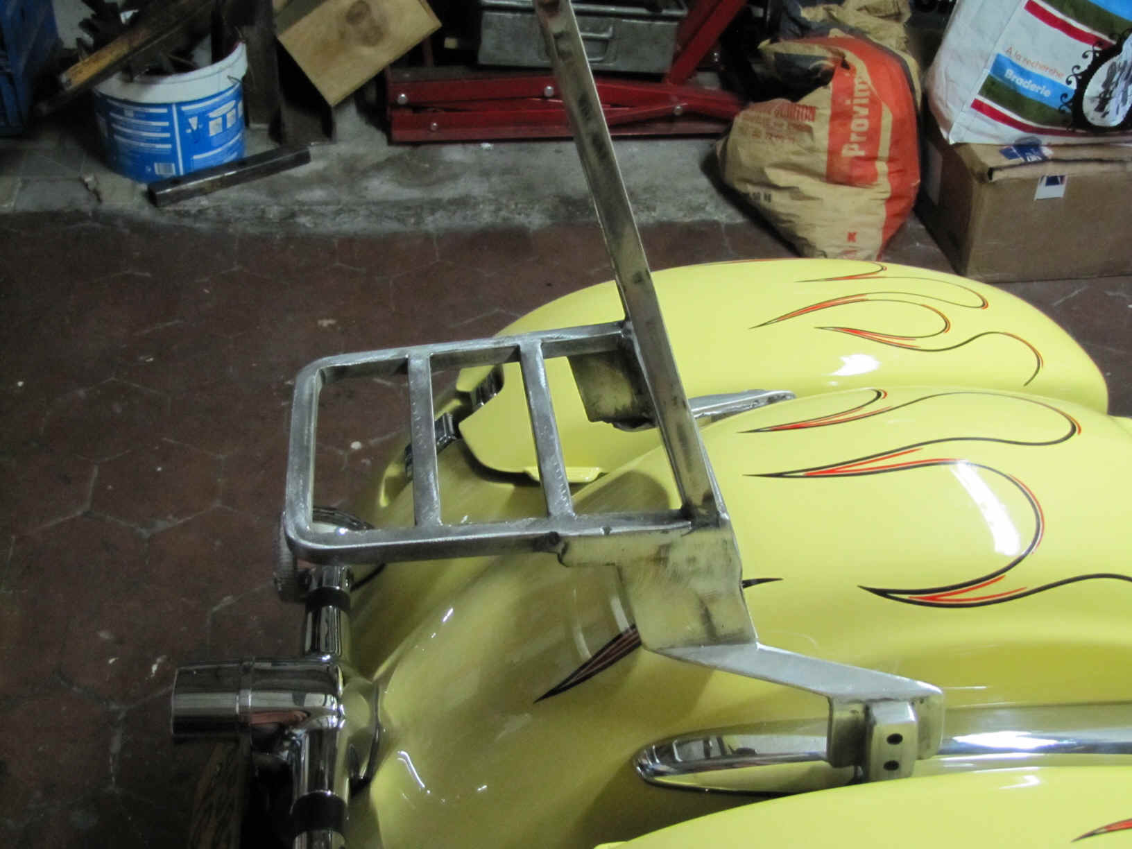 Démontable trés simplement donc retour en config solo aisée, solide, ne touche pas la belle peinture même en charge que du bien fait bravo et en plus une fois chromée!!!! bô!! hi hi hi t'es un artiste Gilles il n'y a pas à dire.