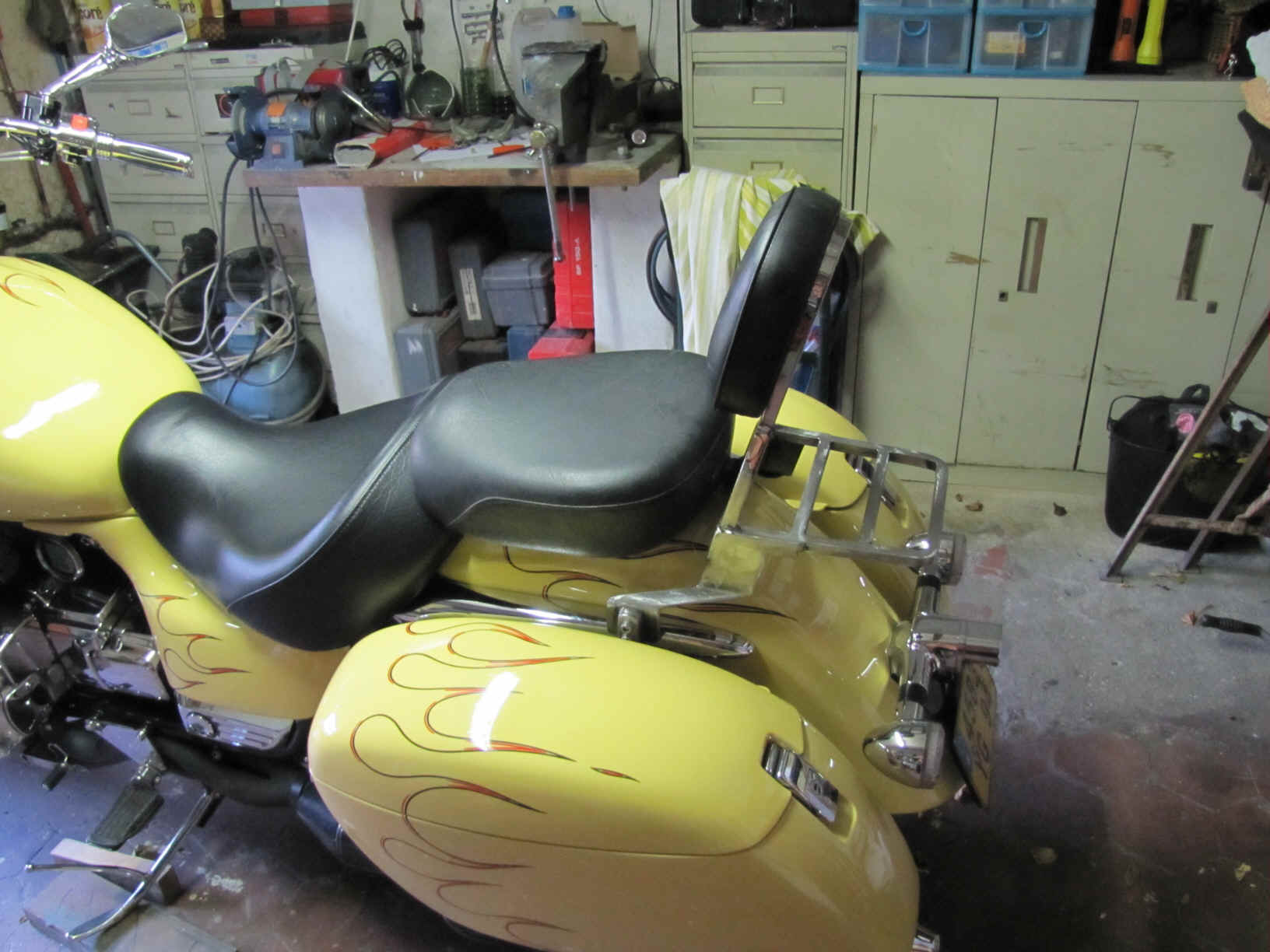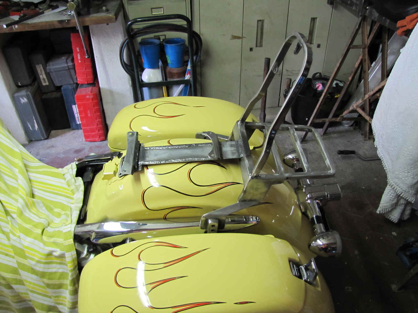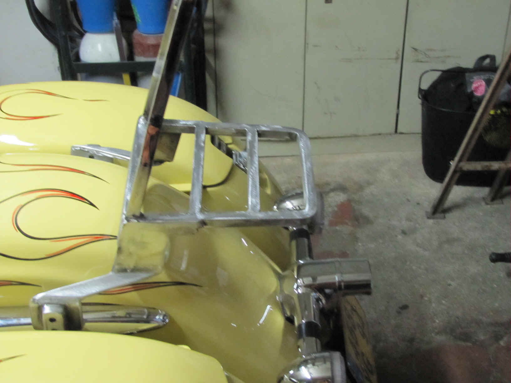 Démontable trés simplement donc retour en config solo aisée, solide, ne touche pas la belle peinture même en charge que du bien fait bravo et en plus une fois chromée!!!! bô!! hi hi hi t'es un artiste Gilles il n'y a pas à dire.