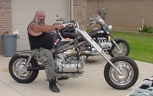 Fais attention Jimmy tu pourrait donner d'autres envie de customisation au fils de rené : Erwann. Aprés le sporster de choc vla t'y pas qu'il pourrait nous faire une Valk chopper à la mode suédoise grande fouche, roue 18 pouces avant 80 rayons, pas de frein avant!! et 15 pouce arriere. The chopper attention devant?